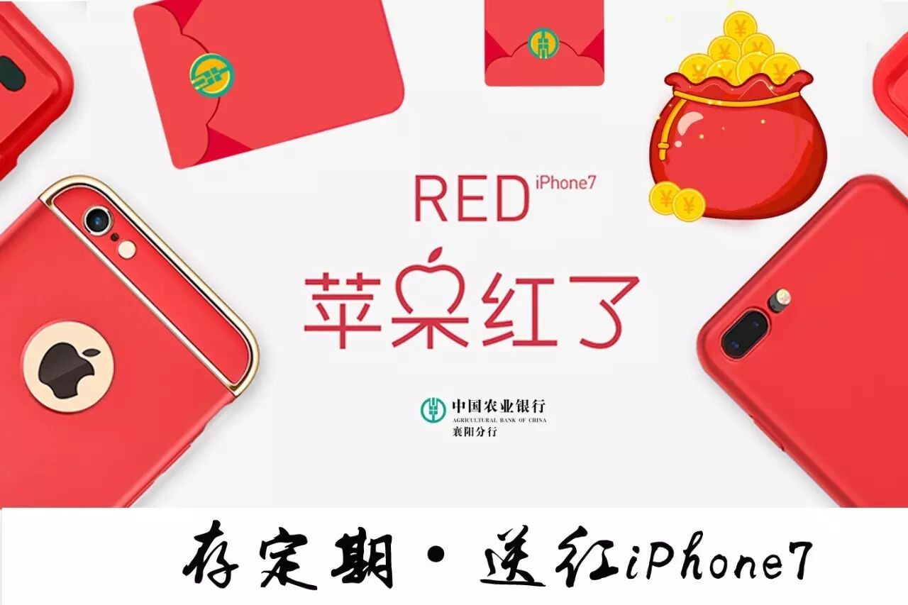 YES!官网售价RMB: 6188 的红色特别版iPhone 7已纳入襄阳农行【存定期·送手机】活动中,存1万元定期存款三年,参与指定活动套餐,便可拥有这部红苹果啦~系不系心动了呢?