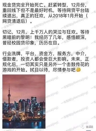 “地下的催收,见简单粗暴得多”,敬叶新对于现金贷的倾覆,表现得还颇为兴奋。