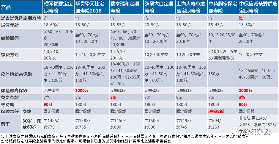 如下列示了市面上性价比极高的几款网销的定期寿险的费率。