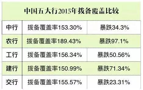 建行危险,拨备覆盖率暴跌71..99%。农行拨备覆盖率虽远超其余四大行,但跌幅高达97.1%。拨备覆盖率直接关系到银行的风险是否可控。