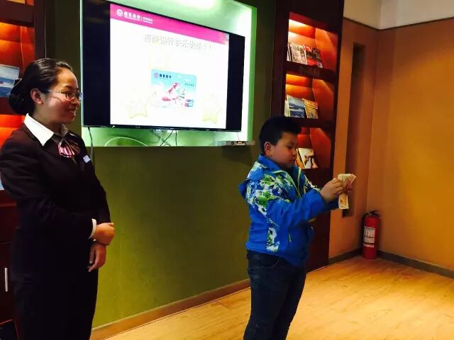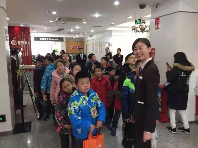 在小招妹子们的带领下,小记者们参观了营业大厅、业务办理窗口,并学会了如何正确使用自助取款机和智能一体机,还了解到了零钱残币兑换、老弱病残幼、外国人士接待以及普通业务、公司业务、VIP业务等各窗口的功能。