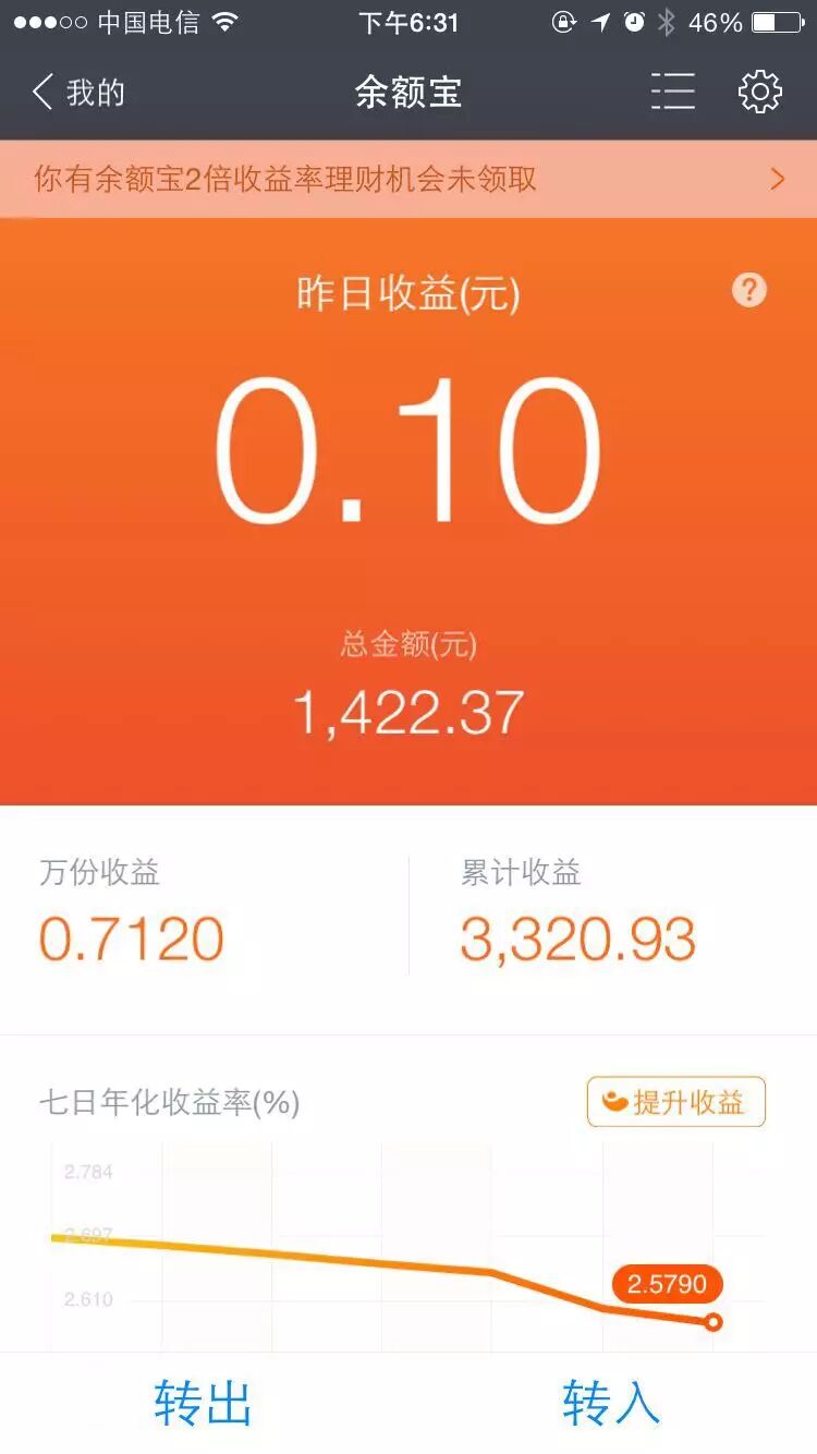 说回余额理财,目前银行的活期存款年化收益率0.35%,余额宝的7日年化收益率目前只是2.5790%,而爱钱帮的7日年化收益率则达到2.8%。虽然只相差百分之0.2个百分点,但是,帮主们也知道这0.2%带来的收益可不止一点点。