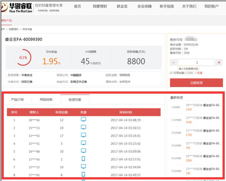 投资门槛低,收益稳健,安全放心,是“华银睿联”的一大特点!