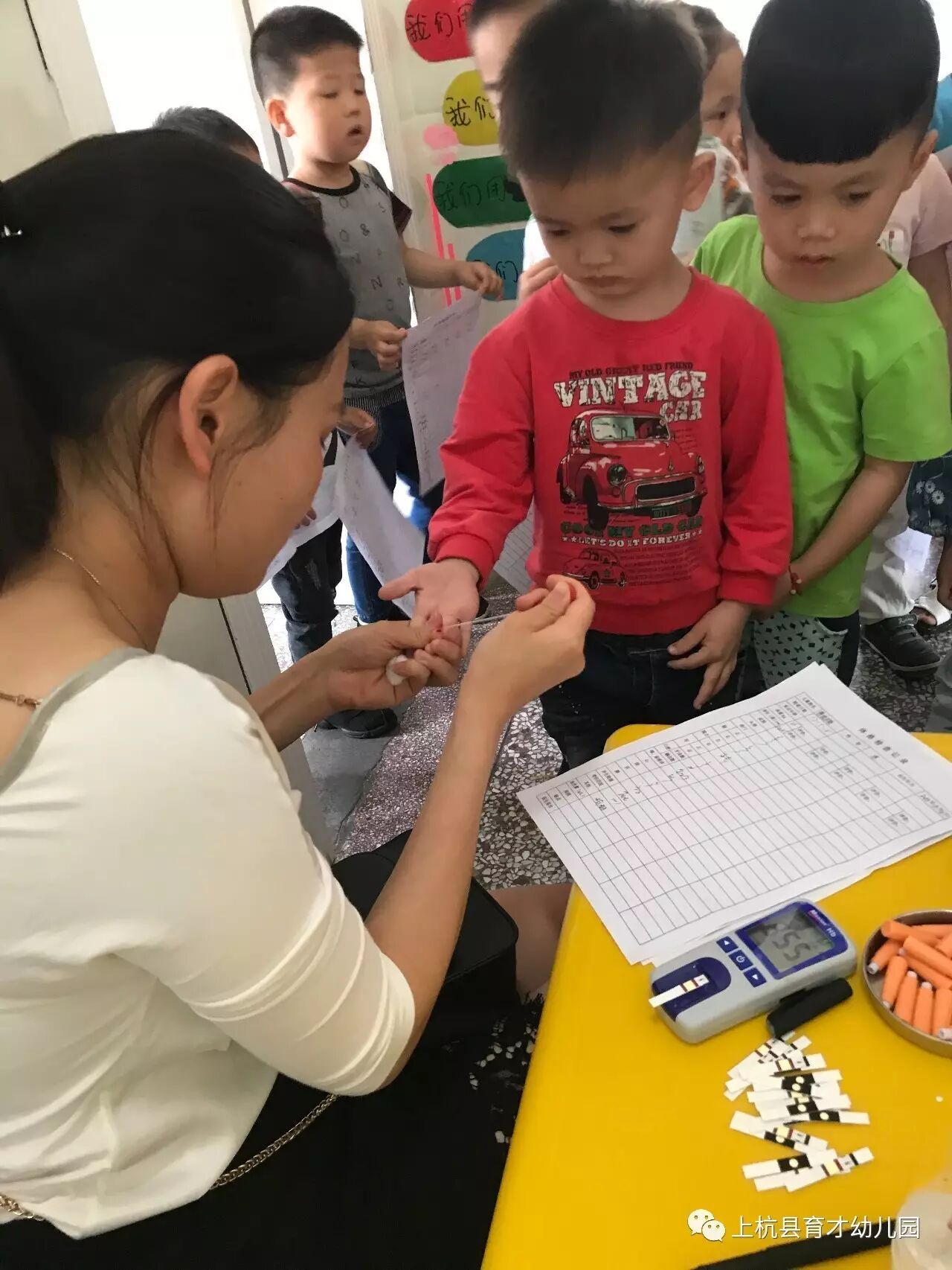 本次体检分班进行,孩子们能在老师的带领下积极和医生配合,自主有序地完成身体的各项检查,尤其是采血化验时表现得很棒!孩子们乖巧听话,得到医生的赞赏,体检活动进行得非常的顺利。