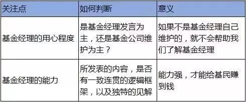比如通过网络,各方面综合基金经理的用心程度、能力之类的东西。