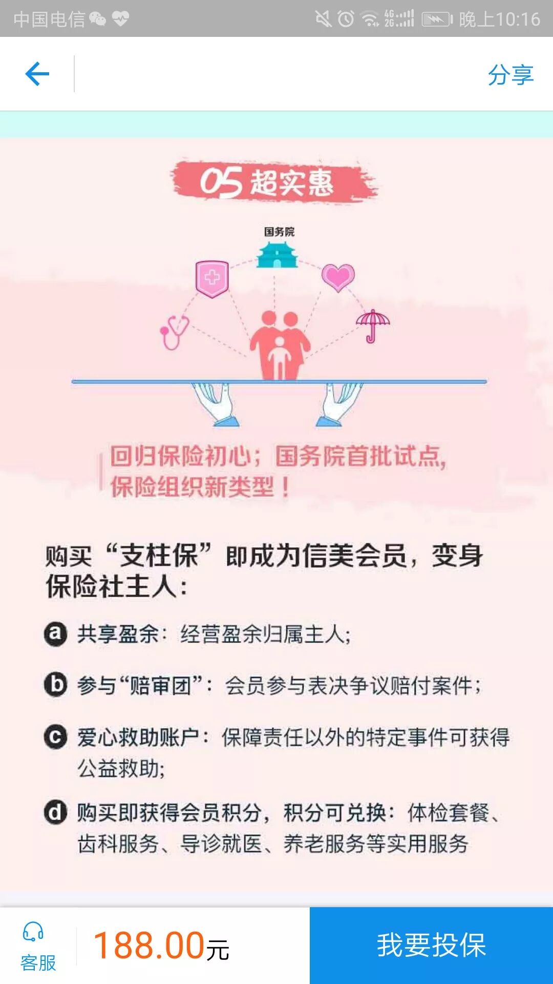 选择支柱保,原因很简单,价格便宜,还可以成为会员,还有共享盈余的期待。当然最重要的是我是家中的支柱,需要支柱保!