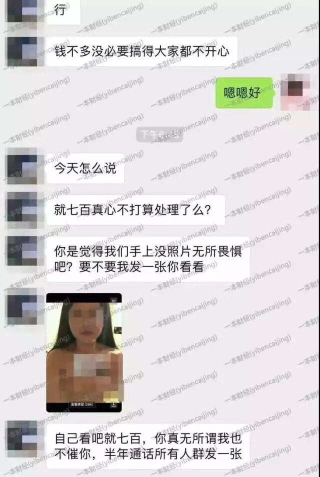 如果是女生,他们会将女生手持的照片,P成,然后威胁借款人,如果不还款,就直接群发给借款人的亲朋好友。