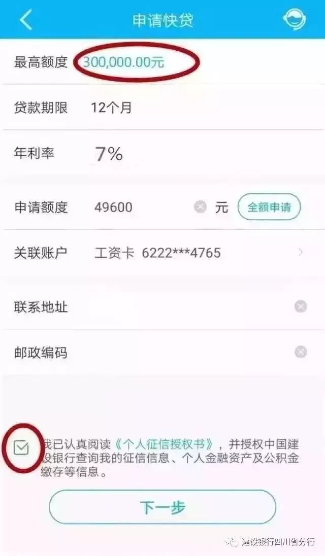 进入“快贷”后,点击“立即申请”并输入申请额度
