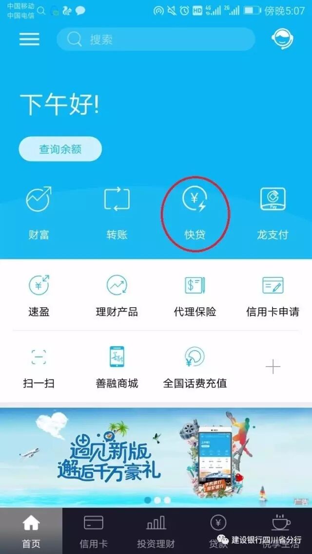 下载并登陆建行手机银行,选择“快贷”
