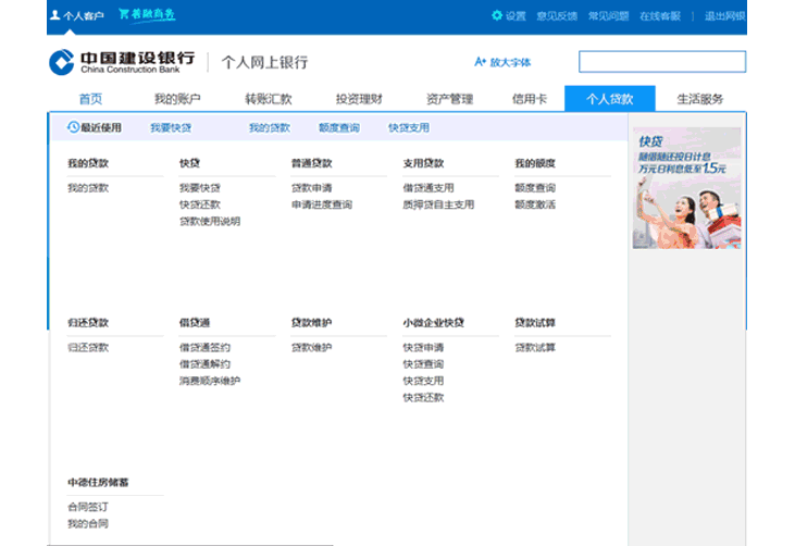 在“个人贷款”板块点击“我要快贷”
