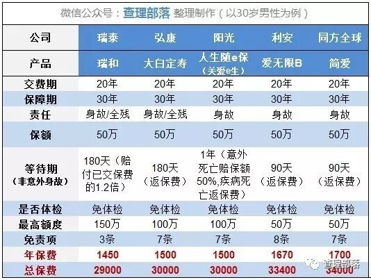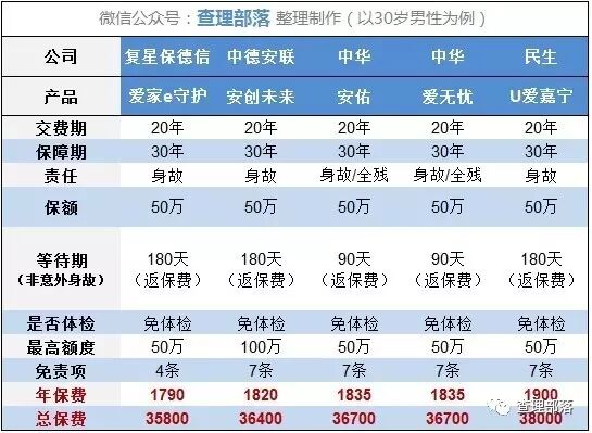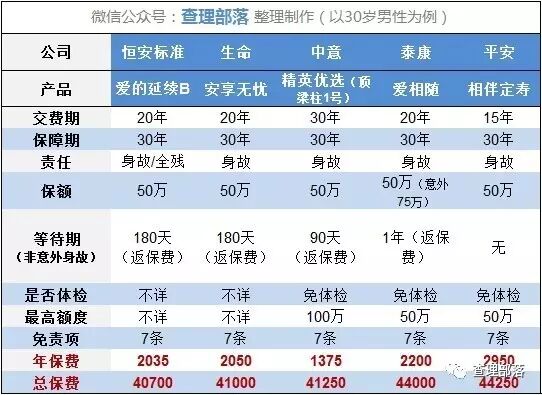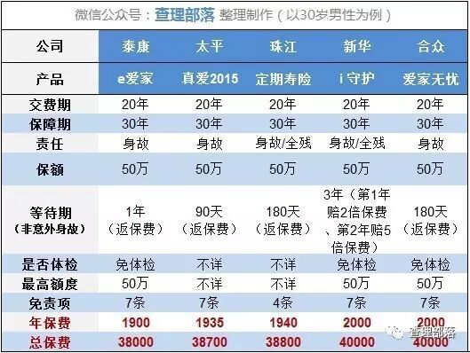 花了很长时间,搜集了各家保险公司在售的定期寿险产品,我把这些产品的责任、保费等逐一贴出来,大家一起来感受下: