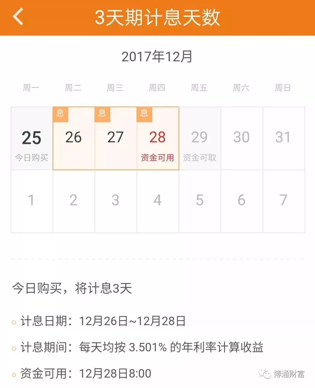 但周五却恰恰相反。在某周周五(无节日),你参与1天期的交易,下一个交易日要到周一,只有一天的收益。所以 ,最好不要在周五进行交易。