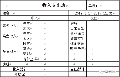 通过收入支出表记录自己的赚钱能力和消费情况。如下表所示。