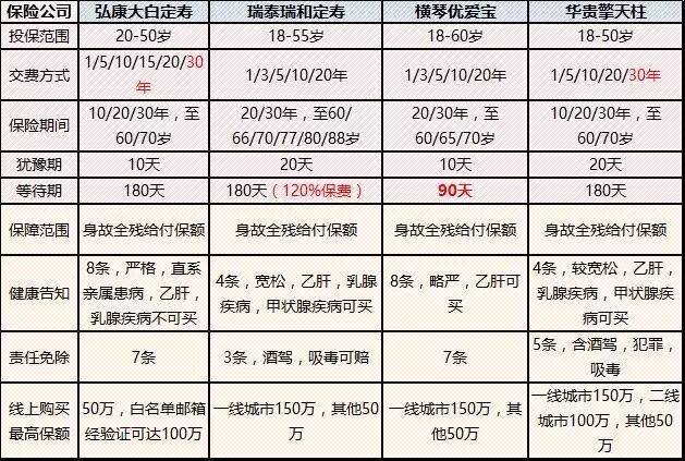 以下按上市时间顺序介绍一些市场上性价比非常高的定寿产品。