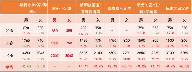说明:本文已经囊括当前市面上性价比较高,比较有知名度的定寿产品,而且对比时不是只对比单点费率,还对比对了费率的平均差异,这个平均值的计算是涵盖了所有可对比点的算术平均值,总体较为客观。