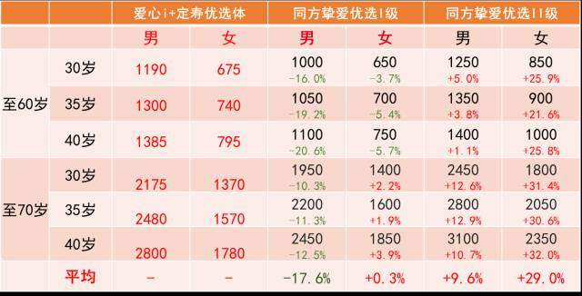 爱心i+优选体费率比华贵产品男性平均便宜20%,女性平均便宜12%。