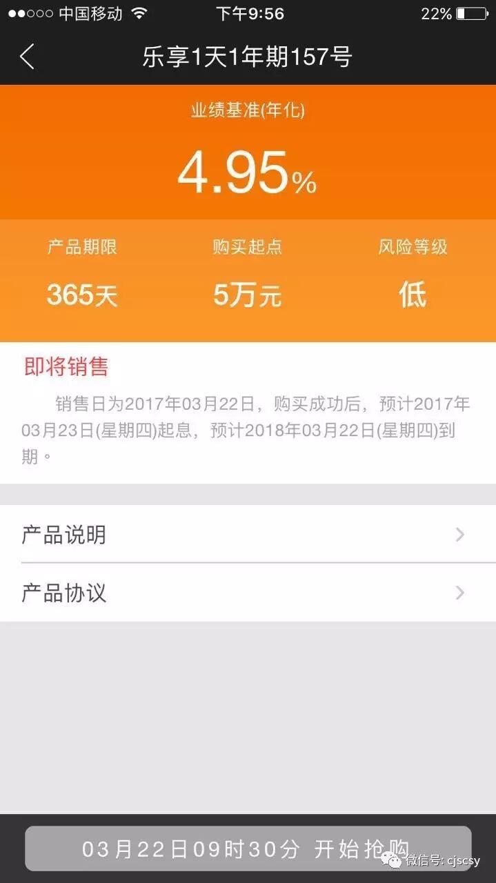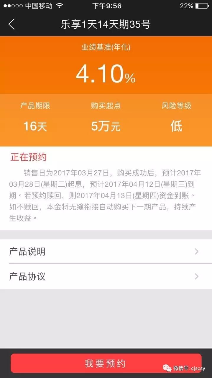 固定期限产品每日9:30分准时开抢,滚动产品在预约期内接受7×24小时预约服务。