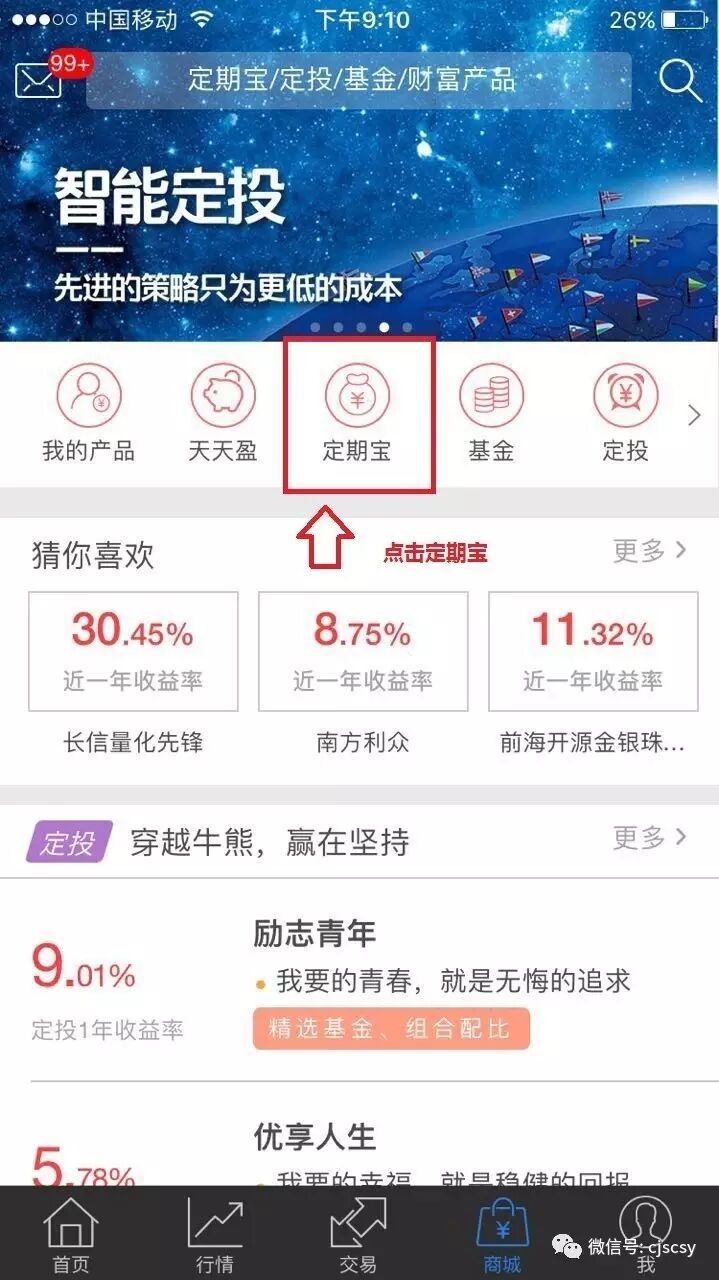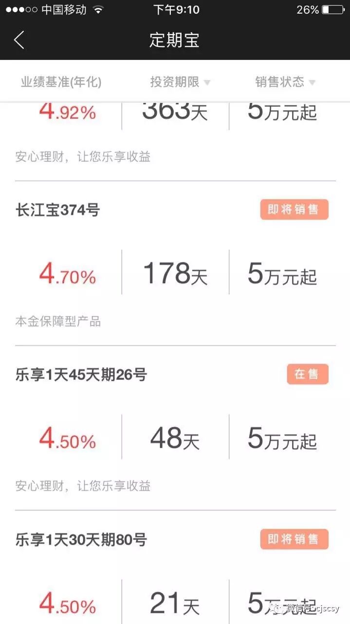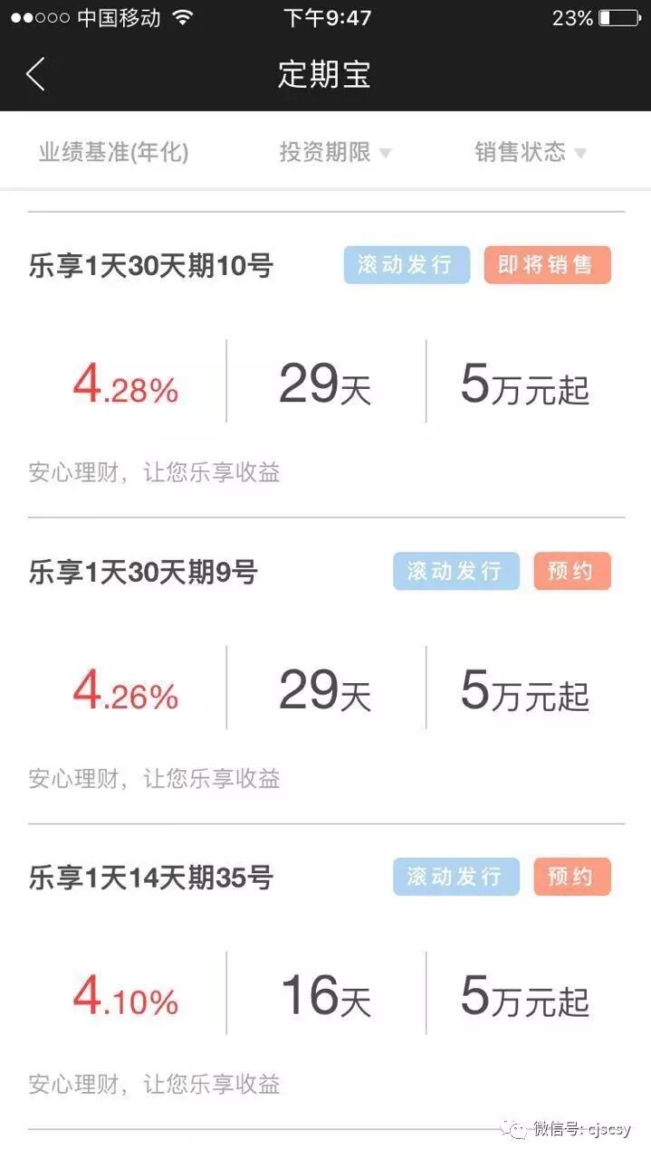 第三步:在定期宝中选择您所需购买期限的理财产品,目前理财既有固定期限的中长期品种,也有滚动发行的中短期品种,满足您不同投资期限的需求,品种多样,每日更新,均可无缝对接下一期理财产品。