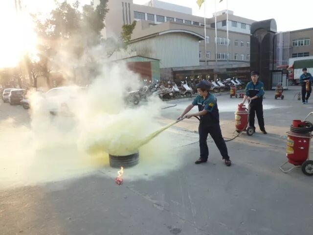 ▲公司员工对模拟着火点进行灭火