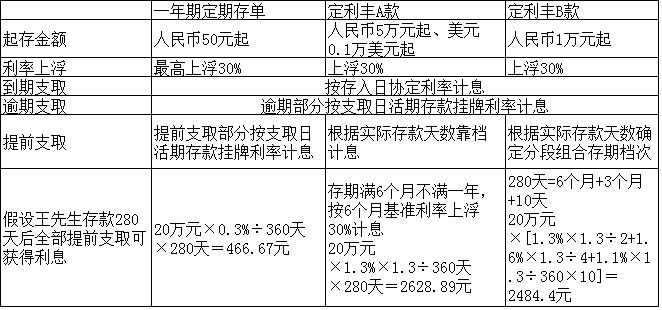 无论是A款还是B款,定利丰提前支取利息都是活期利息5倍以上!