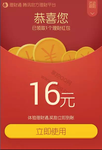 微信扫下面二维码即可领取16元理财通红包,当然如果是你从微信端打开的此页面,也可以直接点击下面链接领取。